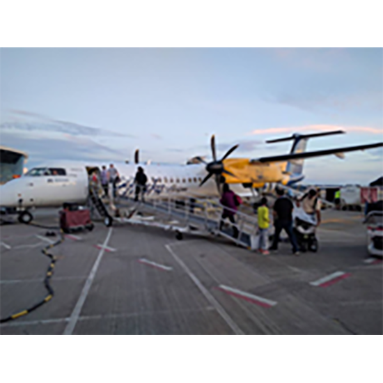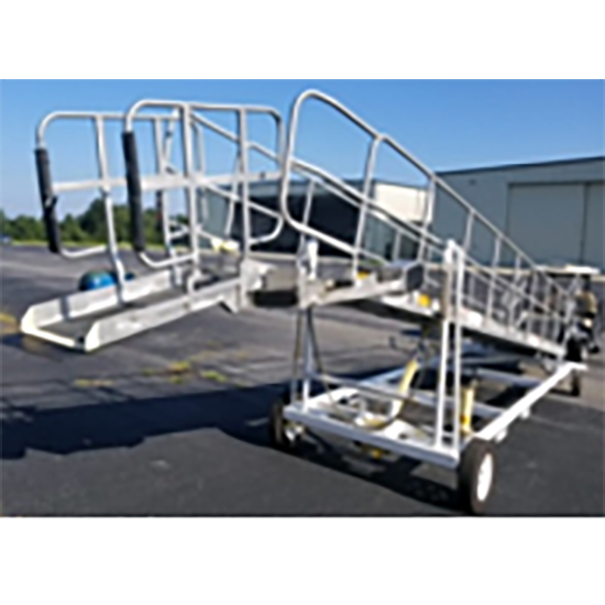 The Turboway passenger ramp is a universal ramp designed to serve commuter size aircraft. This ramp allows easier access for all passengers & disabled & non. With adjustable slope & pivoting bridge, it lays over existing aircraft stairs & provides a faster, safer & more comfortable alternative to boarding & deplaning. The Turboway is comfortably sloped, non-motorized & easy to operate.