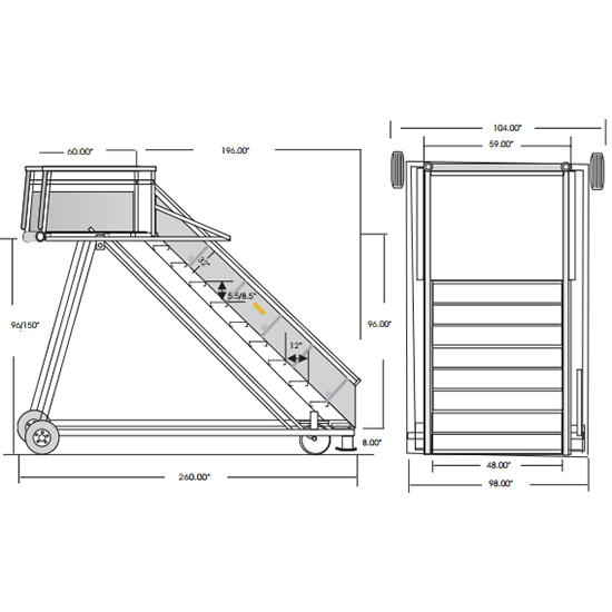 Platform Height: Min. 96”, Max. 150”